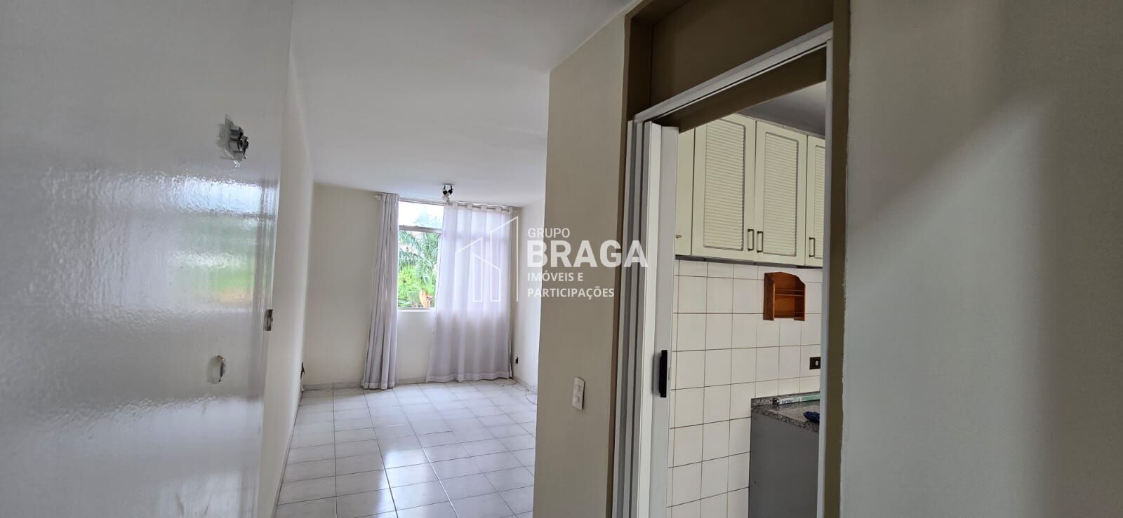 Conta ainda com um banheiro, sala de estar, cozinha com armários planejados e área de serviço.