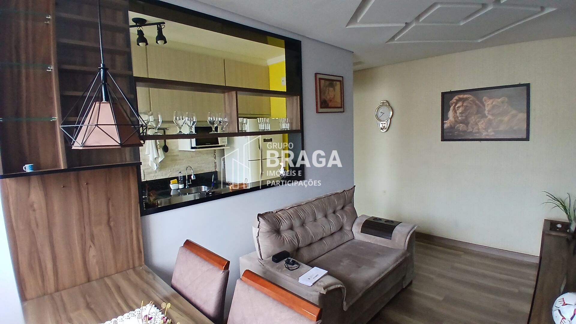 Trata-se de um apartamento bem distribuído, que oferece conforto e praticidade em seus ambientes. A sala de estar apresenta um espaço aconchegante, com painel decorativo e integração harmoniosa com a cozinha por meio de uma abertura na parede, proporcionando maior amplitude e funcionalidade ao ambiente. A cozinha dispõe de armários planejados, oferecendo organização e praticidade para as atividades do dia a dia.