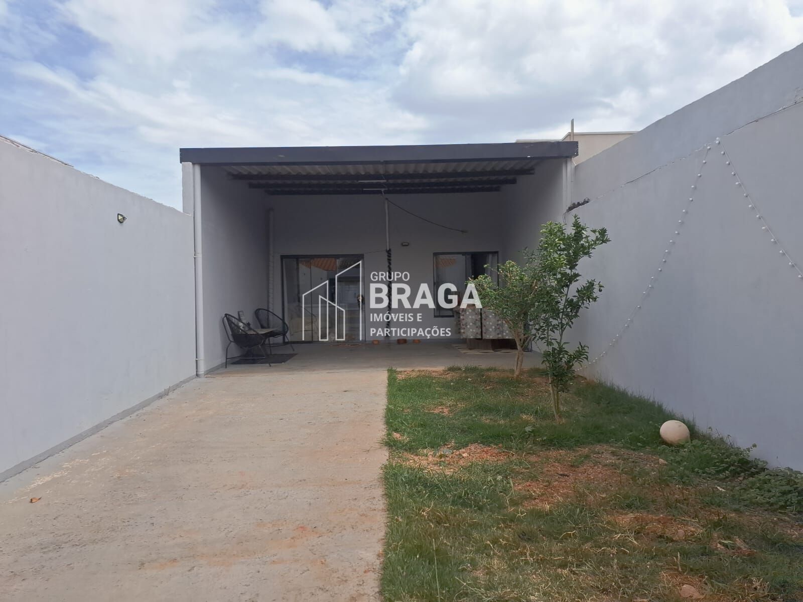 O imóvel conta com uma ampla área externa logo na entrada, com garagem descoberta e espaço de quintal com área gramada, proporcionando um ambiente arejado e agradável. A casa possui portão fechado, garantindo mais segurança e privacidade.